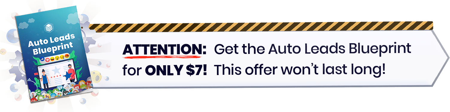 Try the ENTIRE THING risk free! If you don't absolutely love the "Auto Leads Blueprint", I'll refund your 7 bucks and even let you keep it.